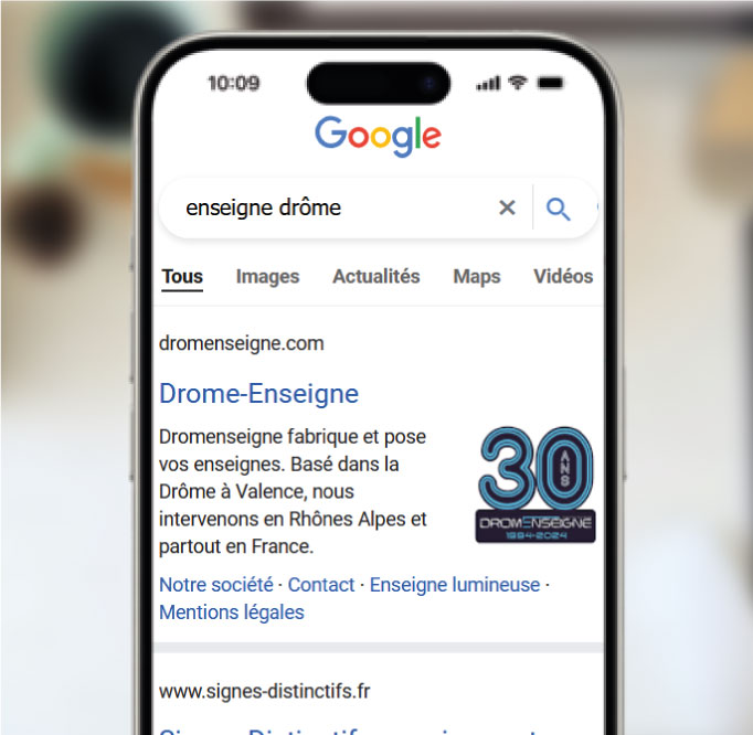 Dromenseigne est une entreprise spécialisée dans la fabrication et la pose d’enseignes dans la Drôme. L’objectif de la refonte de son site était de moderniser son image tout en renforçant sa visibilité locale sur des requêtes clés comme “enseigne Valence” et “enseigne Drôme”. Mission réussie : le site occupe aujourd’hui la première position sur ces mots‑clés, avec un design moderne et une structure pensée pour la performance SEO.